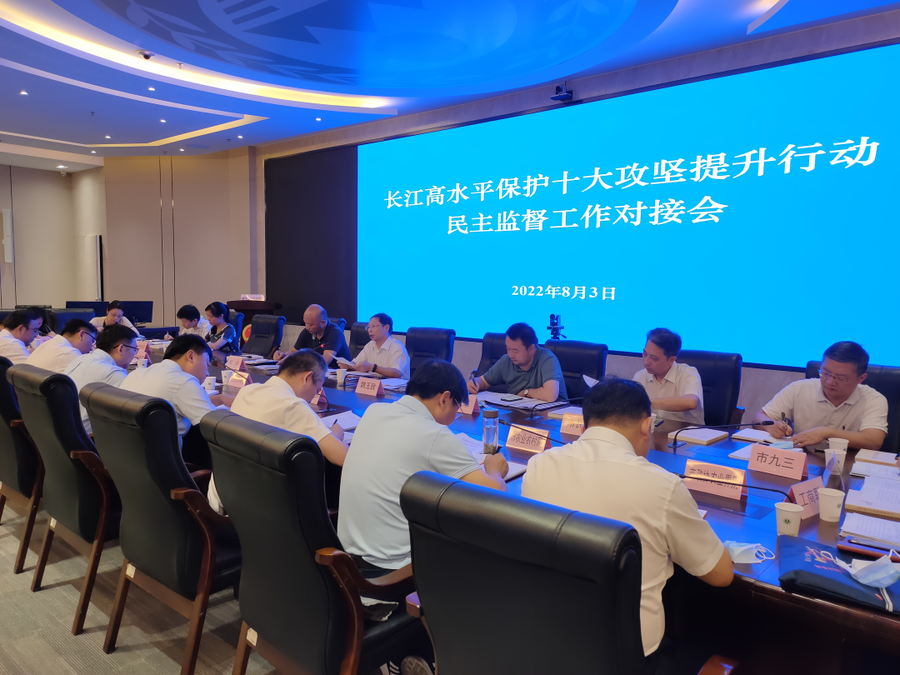 8月3日,武汉市政协在市生态环境局召开长江高水平保护十大攻坚提升行动民主监督工作对接会,武汉市政协人口资源环境委员会副主任刘顺辉主持会议。会议听取了武汉市生态环境局等8个市直部门通报了长江高水平保护十大攻坚提升行动总体工作及十个专项行动工作进展情况,武汉市政协有关界别同各相关市直部门进行面对面沟通交流,进一步明确民主监督的工作任务和具体要求。