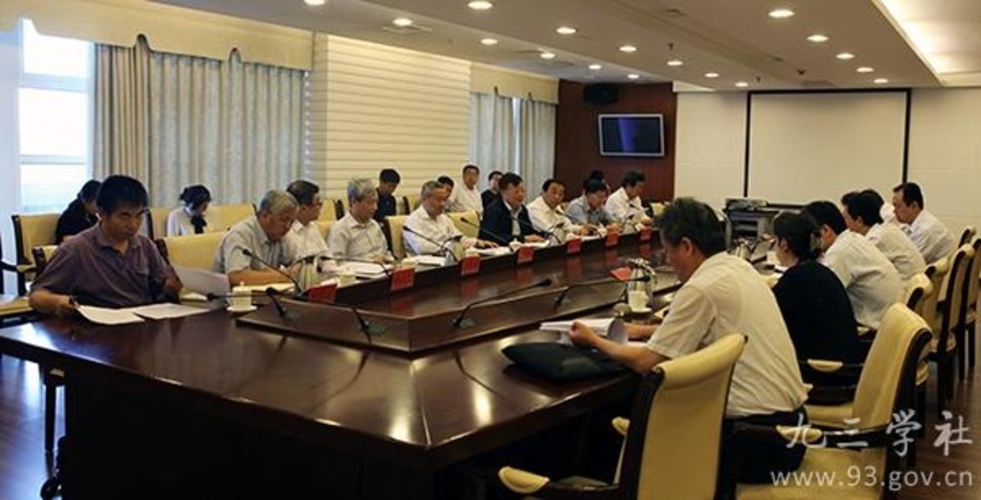 5月14日,九三学社中央常务副主席邵鸿,副主席赖明、马大龙、丛斌在九三学社中央机关与北京市副市长张工一行就加强环首都生态建设进行座谈。