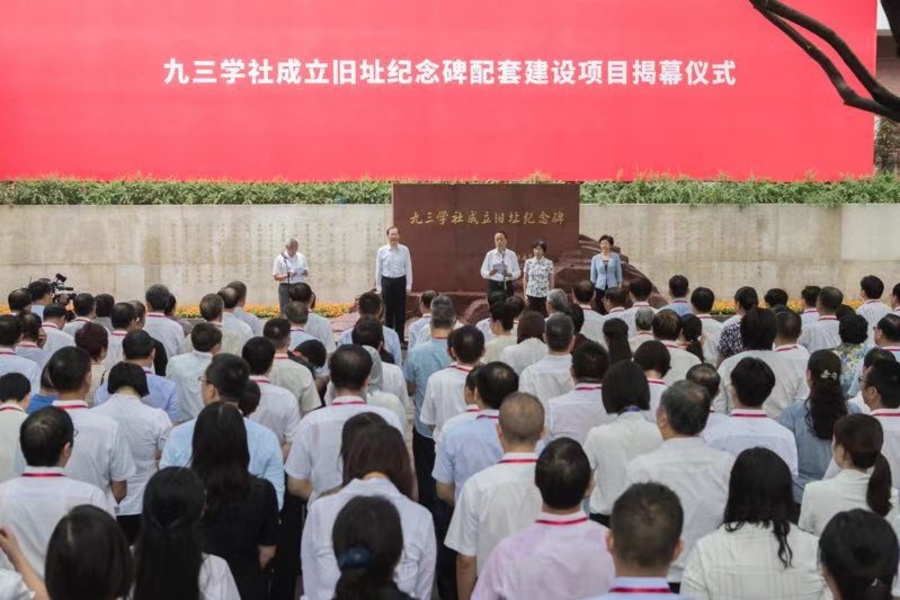 揭幕仪式上,武维华、邵鸿和与会人员一起参观了九三学社成立旧址纪念碑及配套工程。庄严肃穆的纪念碑辅以“为了民主与科学”浮雕群和《九三学社成立始末》文字雕刻,蕴含着丰富的思想内涵和价值理念,既是回顾九三学社历史、弘扬九三学社优良传统的重要载体,也是展现九三学社与中国共产党亲密合作,积极投身革命、建设和改革事业的精神象征。
