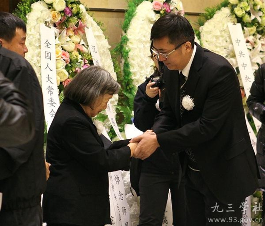 上午9时许,全国政协副主席、九三学社中央主席韩启德,九三学社中央常务副主席邵鸿,副主席卢柯等,在哀乐声中缓步来到师昌绪先生遗体前肃立默哀,向遗体三鞠躬,并与师老亲属一一握手,表示慰问。