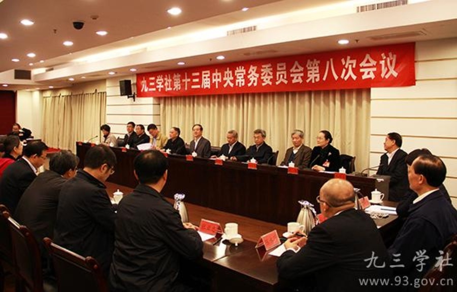 10月28日,九三学社第十三届中央常务委员会第八次会议在京举行。会议认真学习中共十八届四中全会精神,审议通过《九三学社中央关于学习贯彻中共十八届四中全会精神的决议》。会议决定,12月7日至11日在京召开九三学社十三届三中全会。全国政协副主席、九三学社中央主席韩启德主持会议并讲话。九三学社中央常务副主席邵鸿,副主席谢小军、张桃林、赖明、马大龙、丛斌、赵雯、卢柯、武维华、印红出席会议。