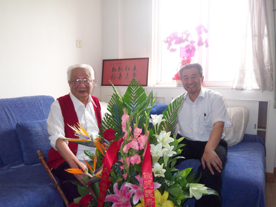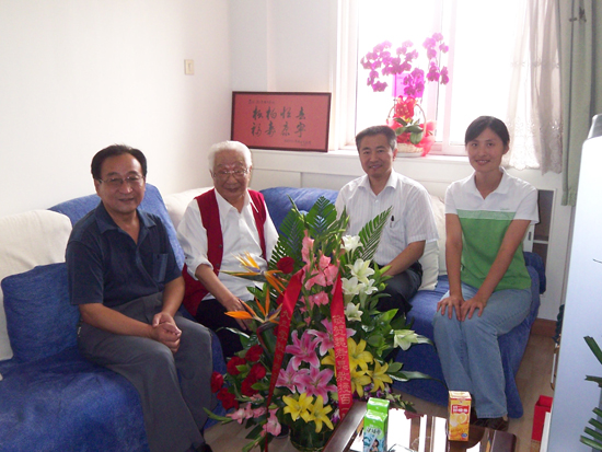 9月16日下午,九三学社中央副主席邵鸿来到九三学社中央顾问、冶金物理化学家、中国科学院资深院士、北京科技大学教授魏寿昆寓所,亲切看望魏老,并祝贺他百一华诞。年已过百的魏老依然步履稳健,思维敏捷。邵鸿一边同魏老握手一边说:“魏老,您还和去年一样。”邵鸿和魏寿昆聊起了北科大团委组织在校学生编写的先生个人文集《师者如兰》,去年在人民大会堂举行的魏寿昆院士百岁华诞暨从教77周年座谈会,还有年底即将召开的九三学社第九次全国代表大会。一说起九三学社的事,魏老就兴致盎然,回忆道:“建国初期到文化大革命以前,我每半个月都到九三学社中央学习,收获真是不少。”听魏老说目前在家中正整理过去的文稿和物品,邵鸿说,九三学社中央正在准备举办社史展览,您能不能为我们提供一些同九三学社相关的有纪念意义的资料、物品,我们复制一份用来展示?九三学社中央举办的刊物《社史研究》下周就要出版了,您能不能把过去参加九三学社活动的事说一说,给我们投投稿?魏老欣然应允,又和邵鸿高兴地聊了一阵九三学社往事,他温暖的笑容中流露出一名老社员对九三学社组织的拳拳深情。邵鸿一行向魏寿昆赠送了生日礼物和鲜花。