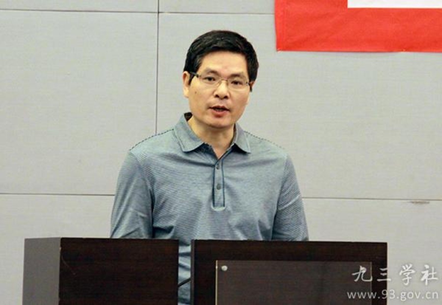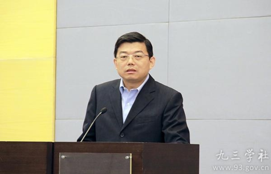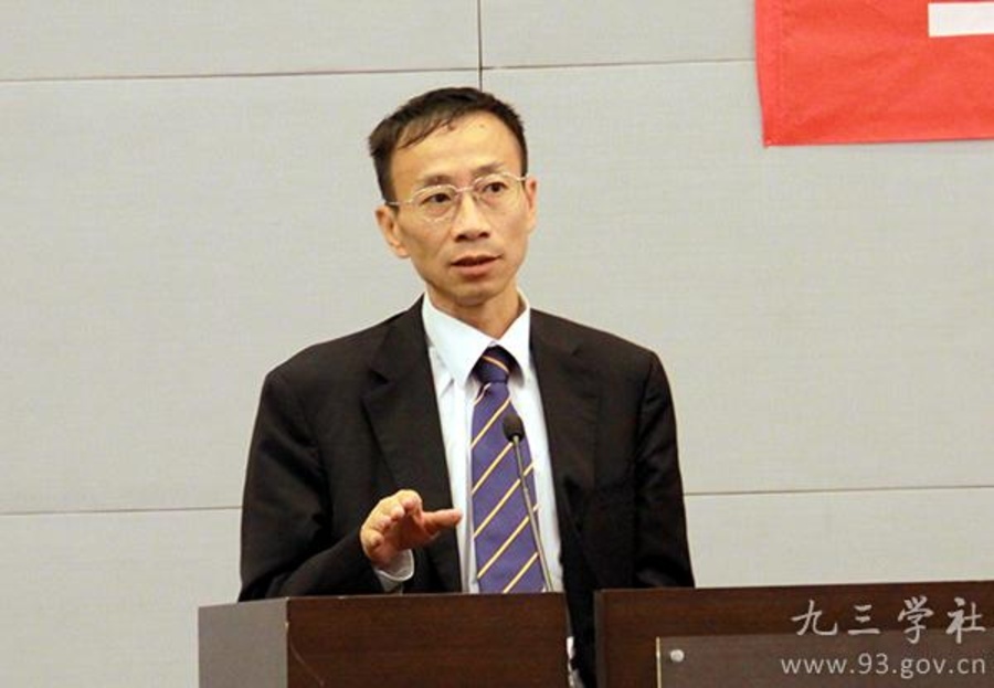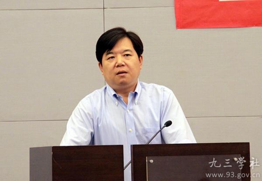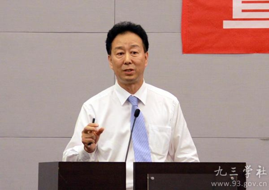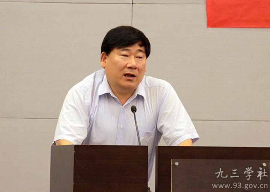 九三学社中央法律专门委员会主任阎建国发表演讲。