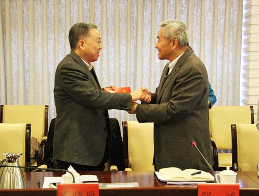 会上,邵鸿为研究中心主任戴晓雁、副主任周群英、研究员张和平、叶烈窑等20名同志颁发了聘书。