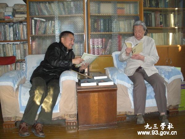 今年是许教授的本命年,她已是八十四岁高龄了。邵主席祝许教授健康长寿并希望她有时间撰写一些社史研究方面的文章。邵主席向许教授赠送了他最近撰写的有关社史的文章和社中央研究室编写的《社史研究通讯》。许教授向韩主席和邵主席赠送了最近出版的《杨振宁传》并对于韩主席、邵主席和九三学社中央多年来对于她的关心和照顾表示衷心的感谢。临行前,邵主席与许教授在邓稼先铜像前合影留念。