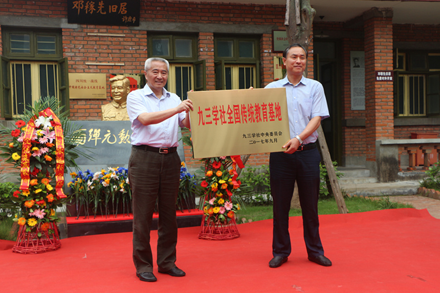 献花仪式后,绵阳市政协副主席、九三学社绵阳市委主委、西南科技大学副校长尚丽平主持授牌仪式。邵鸿将刻有“九三学社全国传统教育基地”的金色牌匾交给了中共梓潼县委副书记郝剑锋,现场爆发出热烈的掌声。“两弹城”升级为“九三学社全国传统教育基地”,既体现了九三学社对绵阳梓潼“两弹城”建设的充分认可和大力支持,也进一步丰富了九三学社思想教育的内涵。