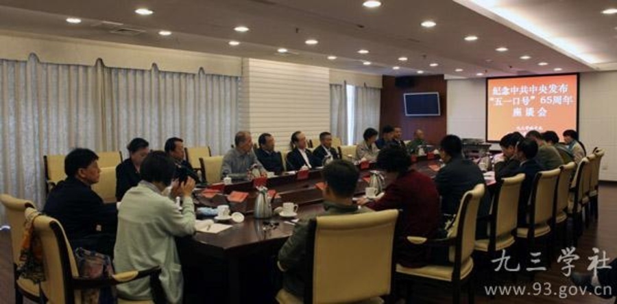 4月28日,九三学社中央在京召开座谈会,纪念中共“五一”口号发布65周年。九三学社中央主席韩启德出席座谈会并讲话,九三学社中央常务副主席邵鸿,九三学社中央副主席兼秘书长印红出席会议。会议由九三学社中央副主席丛斌主持。
