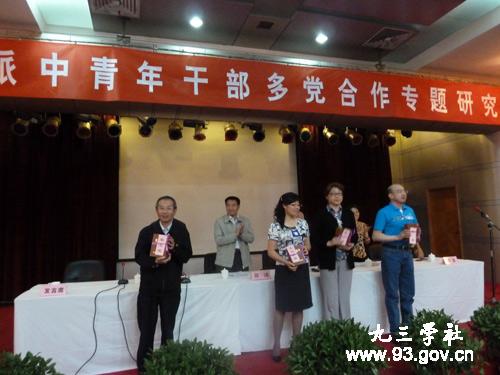 邵鸿副主席与民革中央、中央统战部、中央社院的负责同志向本期研究班的72名学员颁发结业证书。
