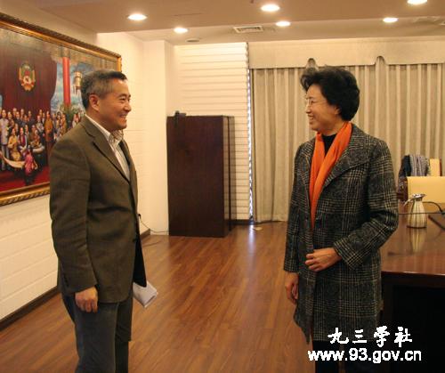 12月9日下午,九三学社中央副主席邵鸿在机关会见了来访的全国妇联党组书记、副主席、书记处书记宋秀岩一行。