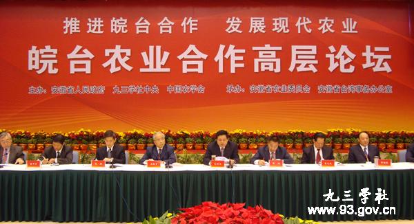 11月3日下午,由九三学社中央、安徽省人民政府、中国农学会主办,安徽省农业委员会、安徽省台湾事务办公室承办的皖台农业合作高层论坛在稻香楼举行。中共安徽省委常委、副省长赵树丛出席会议并致辞。九三学社中央副主席邵鸿、原副主席洪绂曾,安徽省人民政府、农业部台办、中国农学会、台湾地区农业部门负责人及台湾专家、学者,参加合肥农交会台商和部分农业产业化企业代表,部分省市农业部门台办负责人参加了会议。