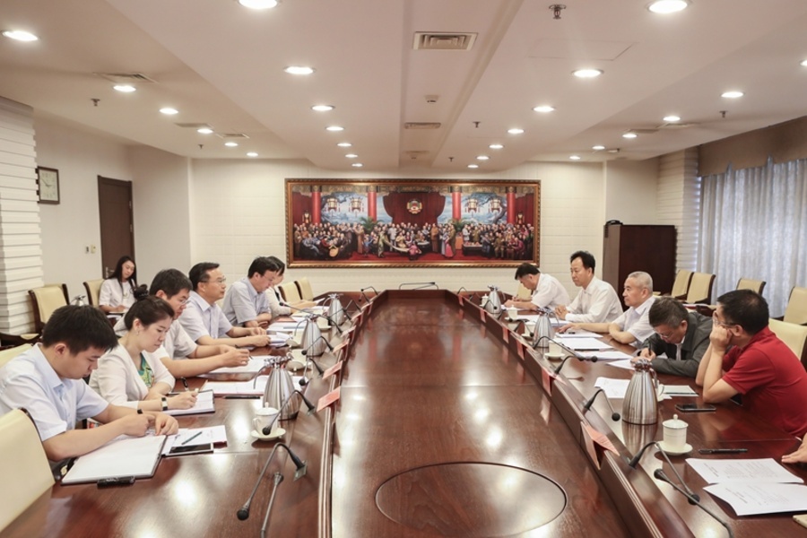 7月26日下午,九三学社中央常务副主席邵鸿、副主席赖明在机关会见财政部副部长余蔚平一行。