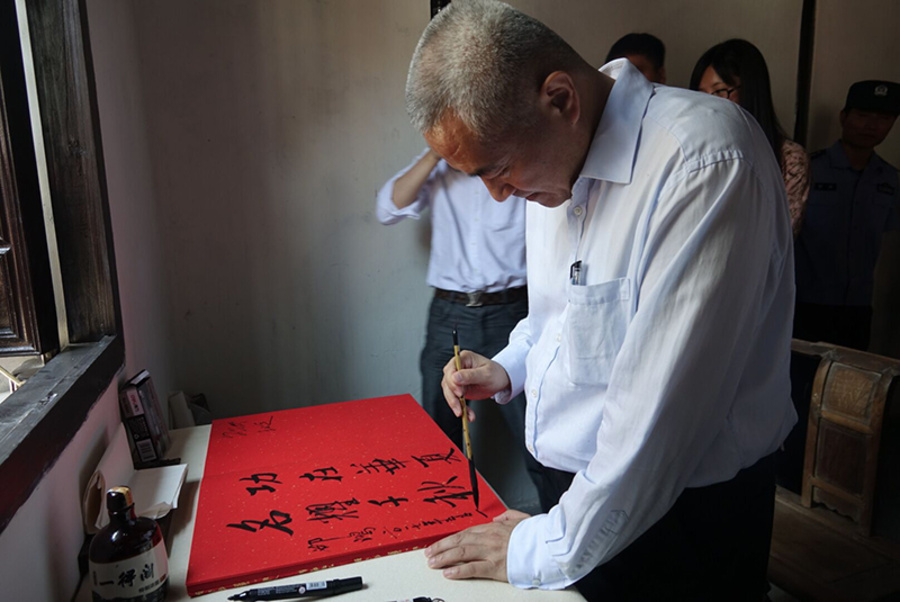 活动现场,邵鸿等参观了王淦昌故居的成列馆藏,深刻缅怀王淦昌先生丰功伟绩。邵鸿当场挥墨题词“功在华夏 名耀千秋”。