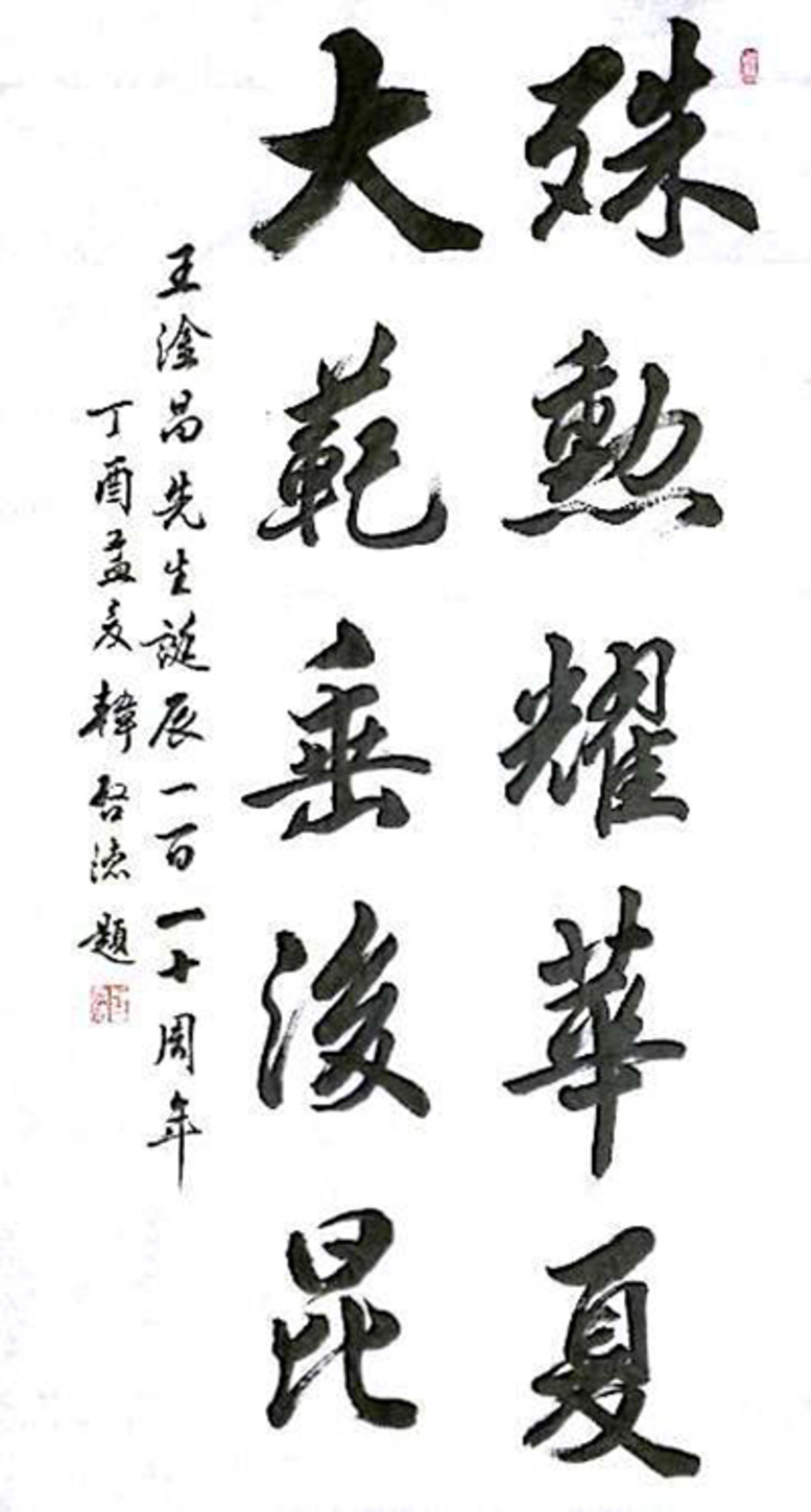 全国政协副主席、九三学社中央主席、中国科学技术协会名誉主席韩启德专门为王淦昌先生诞辰110周年题词“殊勋耀华夏 大范垂后昆”。