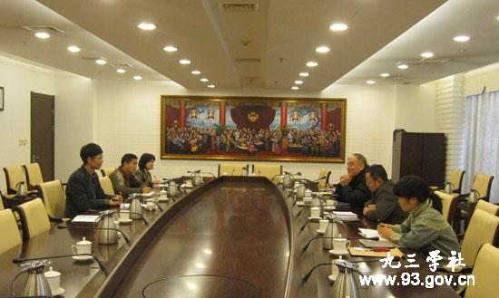 12月30日上午,九三学社中央副主席邵鸿在机关会见了来访的中国政协文史馆筹建办公室主任张振山、副主任许水涛一行。九三学社中央研究室主任岳庆平等有关同志参加了会见。