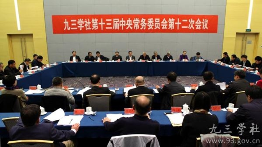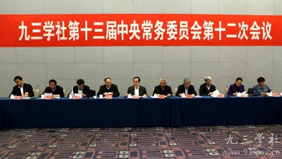 九三学社第十三届中央常务委员会第十二次会议11月5日晚在京举行。会议认真学习中共十八届五中全会精神,审议通过《九三学社中央关于学习贯彻中共十八届五中全会精神的决议》;审议并原则通过《九三学社中央青年工作委员会工作办法(试行)》,通过了九三学社中央青年工作委员会第一届主任委员会成员人选建议名单。会议决定,12月8日至12日在京召开九三学社第十三届中央委员会第四次全体(扩大)会议。全国政协副主席、九三学社中央主席韩启德主持会议并讲话。九三学社中央常务副主席邵鸿,副主席谢小军、张桃林、赖明、马大龙、丛斌、赵雯、武维华、印红出席会议。
