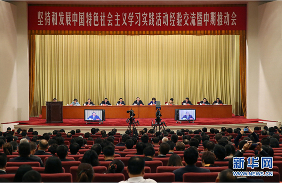 坚持和发展中国特色社会主义学习实践活动经验交流暨中期推动会10月14日在京召开。中共中央政治局常委、全国政协主席俞正声出席会议并讲话。中共中央政治局委员、中央统战部部长孙春兰主持会议。全国政协副主席、九三学社中央主席韩启德代表九三学社中央发言。
