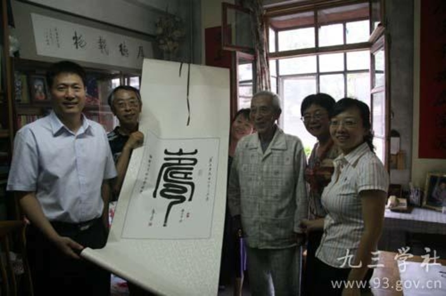 邵鸿详细询问了范老的身体状况和生活情况,祝他生日快乐、身体安康,感谢他为九三学社所做的工作。方炎代表社市委向范老祝寿,刘永泰向范老赠送亲笔题写的书法作品“寿”字和为范老的诗集题写的书名“浮生散记”,社市委机关支社代表也为范老送去了生日礼物。