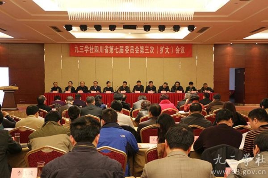 九三学社四川省第七届委员会第三次全体(扩大)会议于12月18日至19日在蓉举行。会议的主要任务是:学习贯彻中共十八届三中全会精神,传达九三学社十三届二中全会精神,听取并审议《九三学社四川省第七届常务委员会2013年工作报告》,第七届委员会领导班子及成员述职和民主评议,动员部署开展坚持和发展中国特色社会主义学习实践活动。九三学社中央常务副主席邵鸿出席了会议并听取了社省委领导班子及成员的述职报告,就加强组织建设、领导班子建设提出了希望。四川省政协副主席、九三学社四川省委主委黄润秋代表常委会作工作报告,并作闭幕讲话。