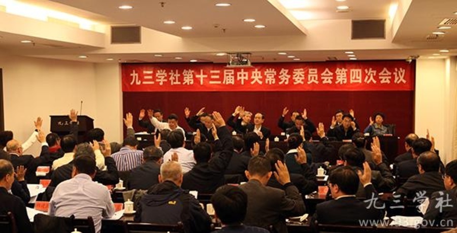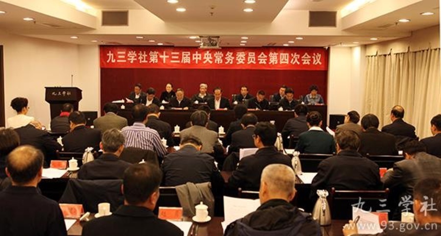 九三学社第十三届中央常务委员会第四次会议11月18日在京召开。会议认真学习中共十八届三中全会精神,审议通过了《九三学社中央关于学习贯彻中共十八届三中全会精神的决议》,原则通过了《九三学社中央关于在全社开展坚持和发展中国特色社会主义学习实践活动的实施方案》、《九三学社中央监督委员会工作条例(修订)》。会议决定,成立九三学社中央特约监督人员委员会并表决通过了主任委员、副主任委员建议名单。会议决定,12月9日至11日在京召开九三学社十三届二中全会。全国政协副主席、九三学社中央主席韩启德主持会议并讲话。九三学社中央常务副主席邵鸿,副主席谢小军、张桃林、赖明、马大龙、丛斌、赵雯、卢柯、武维华、印红出席会议。