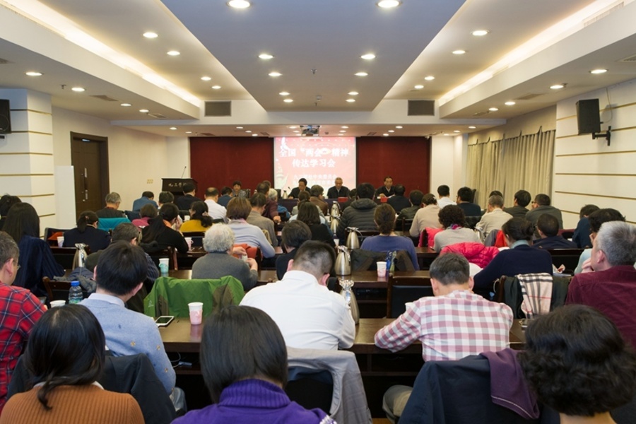 丛斌从会议概况和主要内容等两个方面传达十三届全国人大一次会议精神。他说,思想统一、意志一致、纪律严明是本次人大会议的突出特点。丛斌着重从学习习近平主席系列重要讲话精神、审议政府工作报告和国务院机构改革方案、通过宪法修正案和监察法、选举新一届国家机构组成人员等方面,与大家分享了他的体会和感想。他认为,习近平主席系列重要讲话精神坚持马克思主义的人民立场,阐释社会主义民主的深刻内涵,强调中华文化软实力的重要性,以及坚持和加强党的全面领导的重要性和必要性,体现了习近平新时代中国特色社会主义经济思想、全心全意为人民服务思想、人类命运共同体思想,以及强军思想。丛斌认为,宪法修改是中共中央从新时代坚持和发展中国特色社会主义全局和战略高度作出的重大决策,是全面推进依法治国、推进国家治理体系和治理能力现代化的重大举措,充分体现了中国特色社会主义政治优势和制度优势,具有坚实的政治基础、法理基础、实践基础和社会基础,对于全面贯彻中共十九大精神和习近平新时代中国特色社会主义思想,在法治轨道上更好坚持和发展中国特色社会主义,实现“两个一百年”奋斗目标和中华民族伟大复兴的中国梦,具有重大而深远的意义。丛斌说,与会代表共提出议案325件,主要集中在适应深化国家监察体制改革和国家机构改革需要,适应建设现代化经济体系需要,切实保障和改善民生,发展文化事业和文化产业等方面;共提出建议7100多件,主要集中在推进供给侧结构性改革,促进区域协调发展,加大精准脱贫力度,实施乡村振兴战略,推进“一带一路”建设,深化医疗、教育改革,保障和改善民生等方面。