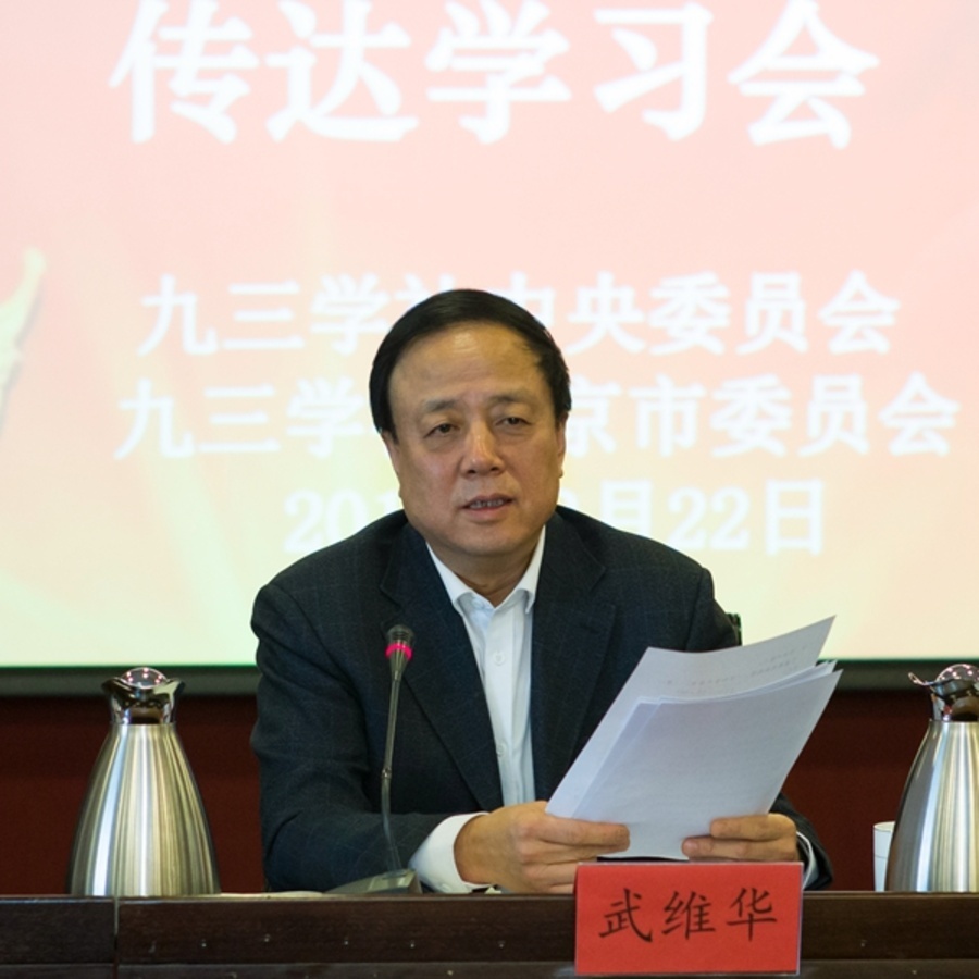 武维华指出,九三学社作为中国特色社会主义参政党,尤其是要认真学习、深刻领会习近平总书记在民盟、致公党、无党派人士、侨联界委员联组会上的重要讲话精神。一是要坚定不移地坚持中国共产党领导的多党合作和政治协商制度,充分认识这一“新型政党制度”的优越性,牢固树立“四个意识”、进一步增强“四个自信”。二是要坚定不移地坚持和发展社会主义民主,坚持和发扬民主集中制。九三学社作为参政党,要增强责任感和使命感,有事多商量、有事好商量、有事会商量,努力做执政党的好参谋、好帮手、好同事。三是要坚定不移地为全面建成小康社会努力奋斗。要围绕打赢防范化解重大风险、脱贫攻坚、污染防治三大攻坚战,大兴调查研究之风,深入一线,客观真实了解情况,建诤言谋良策,积极开展批评监督,推动各项工作落地见效。四是要坚定不移地弘扬优良传统,加强自身建设。要大力弘扬九三学社爱国民主科学的优良传统,大力弘扬科学精神,坚持真理,传播正能量。