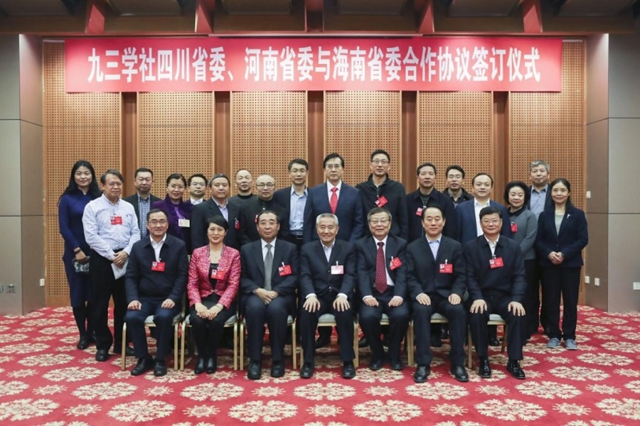 为响应和落实九三学社中央与海南省政府签订的“九琼合作”协议,2018年12月8日,九三学社海南省委与社四川省委、社河南省委合作协议签订仪式在京举行。九三学社中央常务副主席邵鸿,九三学社中央副主席赖明、丛斌出席。九三学社海南省委主委过建春、社河南省委主委张亚忠、社四川省委专职副主委沈光明、社河南省委专职副主委陈志民出席仪式。仪式由九三学社海南省委专职副主委周耀柒主持。