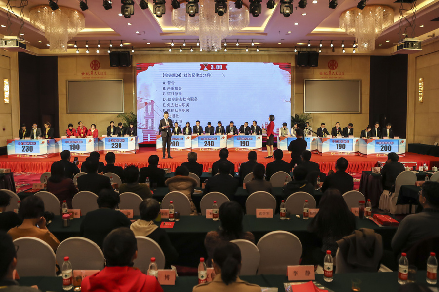 丛斌宣布竞赛开始。来自社江西、湖南、山西、广西、湖北、上海、河北、福建、黑龙江省委的9支代表队随之展开现场巅峰对决。27位选手个个精神饱满,反应迅速,一题不失,表现精彩,竞相展现出丰富的社章社史知识储备和良好的精神风貌。经过个人必答、集体共答、风险共答、比拼速度、抢答等5个环节的激烈角逐,社福建省委代表队脱颖而出,一举夺冠,获九三学社“社员之家杯”社章社史集体竞赛一等奖。社上海、河北、广西省委代表队获二等奖,社江西、湖南、山西、湖北、黑龙江省委代表队获三等奖。