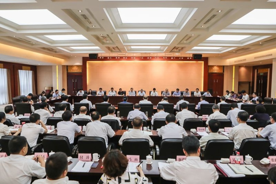 中共陕西省委副书记贺荣介绍陕西省脱贫攻坚工作及九三学社中央反馈问题整改情况。九三学社中央研究室主任穆建民代表调研组向陕西省反馈了赴商南开展脱贫攻坚民主监督情况。