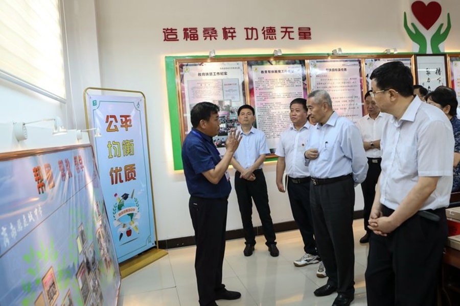 7月10日,调研组在陕西省商南县鹿城中学调研教育扶贫情况
