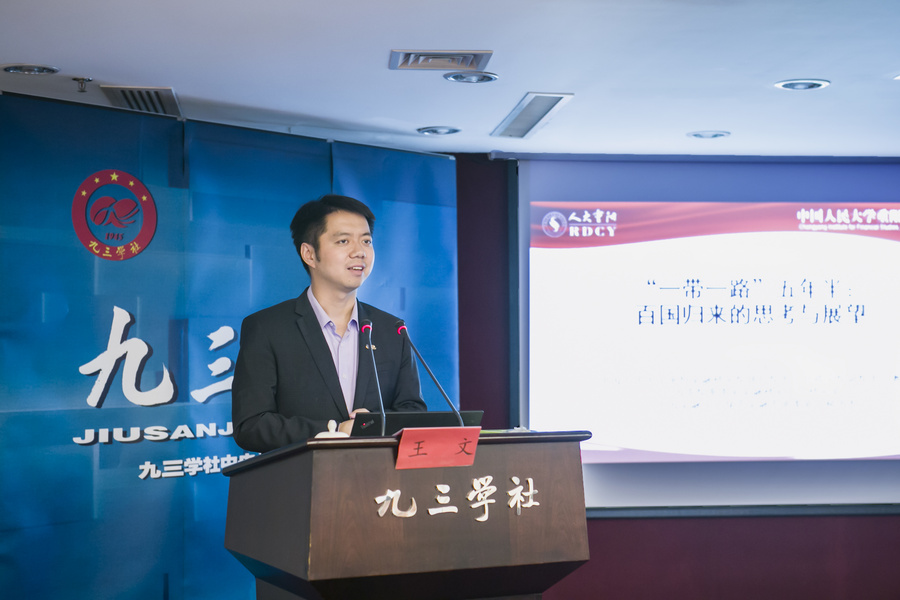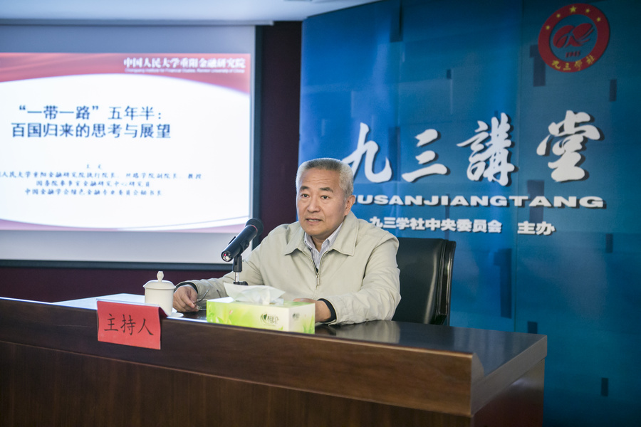 4月11日下午,“九三讲堂”在社中央机关举行,九三学社中央常务副主席邵鸿出席并主持。本期讲堂由中国人民大学重阳金融研究院执行院长王文教授主讲“一带一路”五年半:百国归来的思考与展望。
