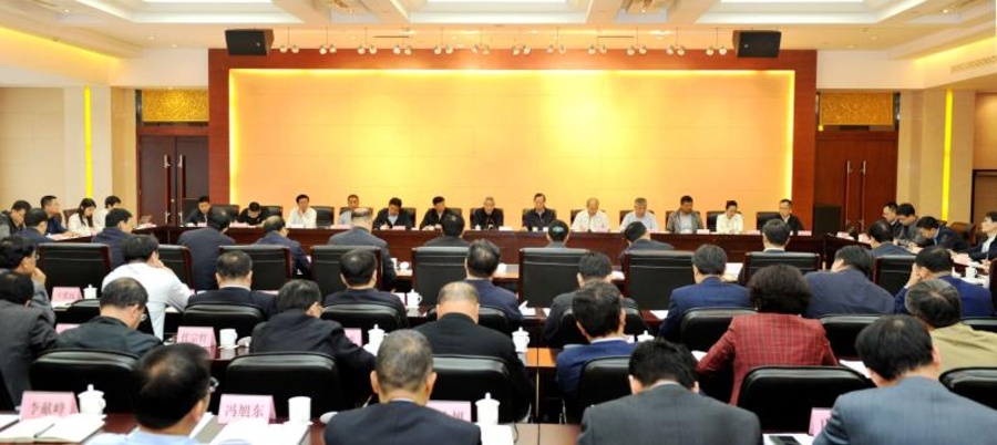 陕西省省长刘国中介绍全省脱贫攻坚工作整体情况。九三学社中央研究室主任穆建民代表调研组向陕西省反馈脱贫攻坚民主监督情况。