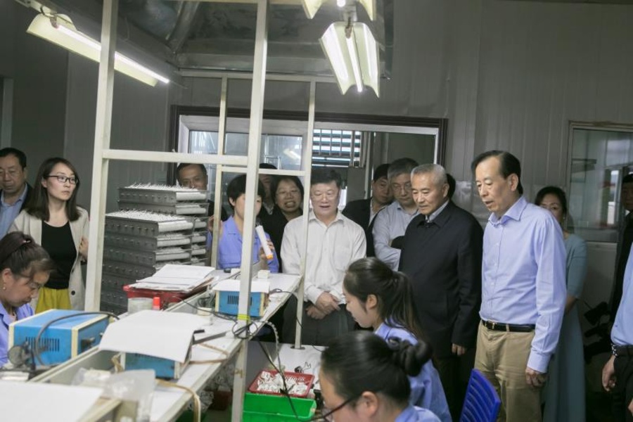 5月11日,邵鸿一行调研镇安县扶贫工厂普瑞电子公司。