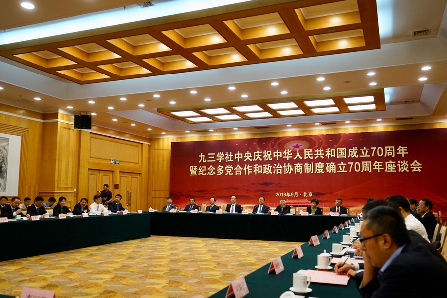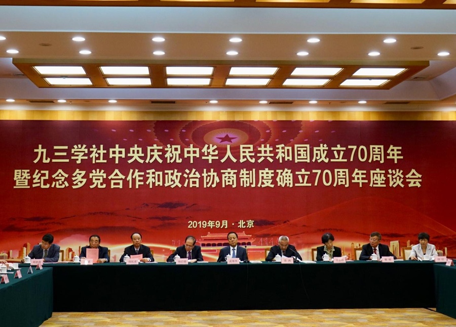 9月16日,九三学社中央在京召开庆祝中华人民共和国成立70周年暨纪念多党合作和政治协商制度确立70周年座谈会。九三学社中央主席武维华出席并讲话,九三学社中央常务副主席邵鸿主持会议。九三学社中央副主席赖明、丛斌、印红、刘忠范,九三学社中央在京老领导韩启德、王志珍、陈抗甫参加会议。