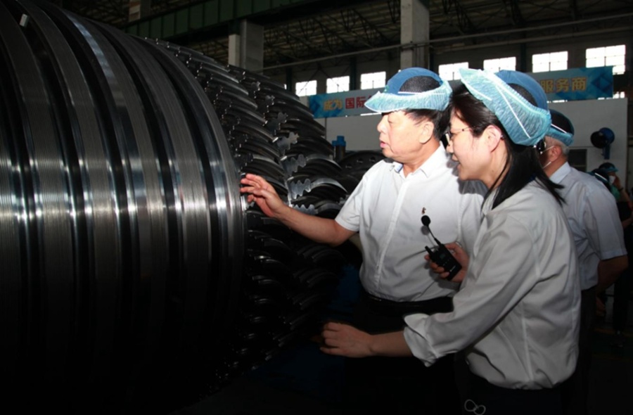 武维华在汽轮机车间了解汽轮机转子技术创新的相关情况