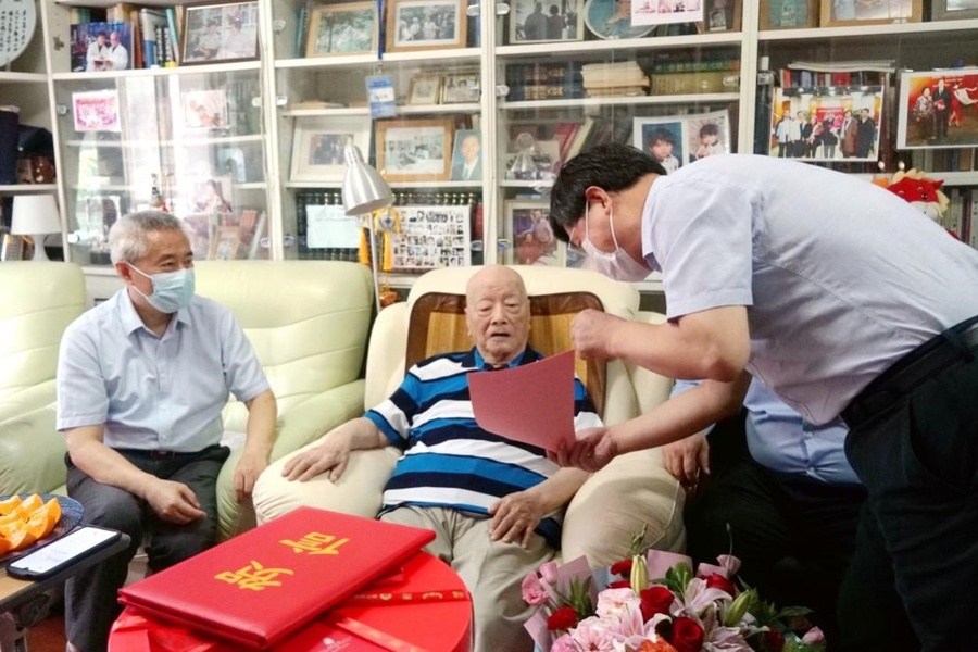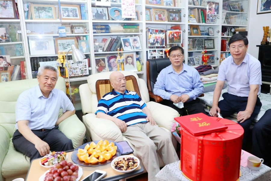 7月10日上午,九三学社中央常务副主席邵鸿前往社中央原顾问、中国科学院院士、北京大学教授唐有祺先生寓所,为唐先生百岁华诞祝寿。北京大学党委书记邱水平,九三学社中央副主席、社北京市委主委、北京大学化学与分子工程学院教授刘忠范院士陪同。
