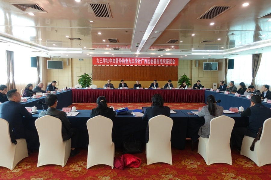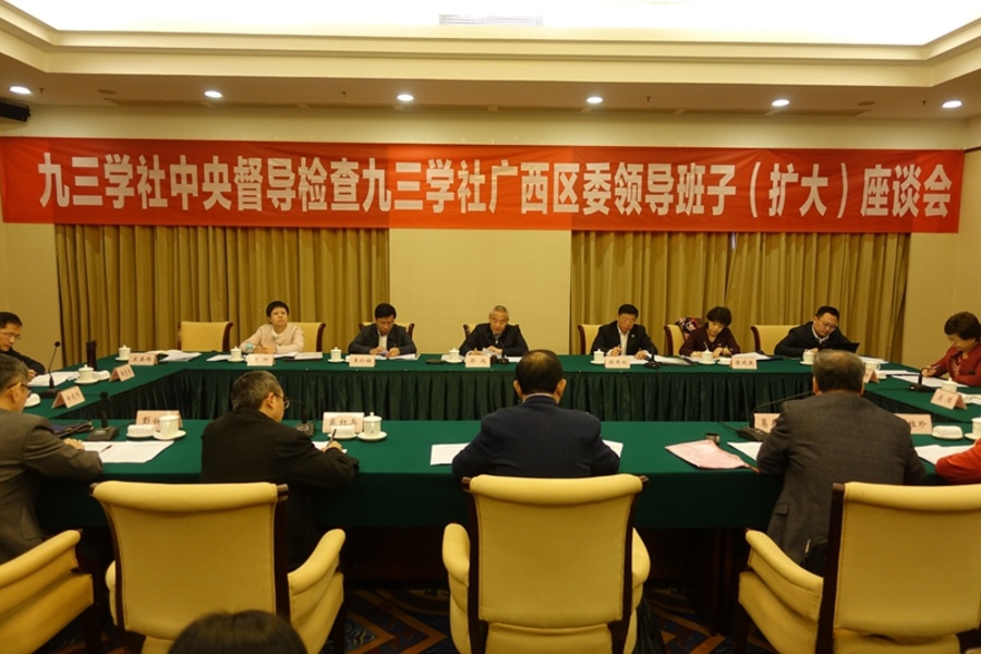 在南宁,督导检查组听取了九三学社广西区委主委李彬代表社广西区委做的工作汇报,先后召开了社区委领导班子(扩大)座谈会和基层组织座谈会,与社区委领导班子成员和机关部门负责人单独谈话,同中共广西区委统战部负责同志进行了座谈交流。