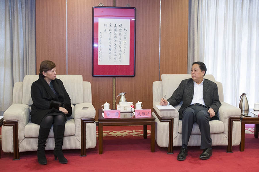 1月25日上午,九三学社中央主席武维华在九三学社中央机关会见中共北京市委常委、统战部长齐静。