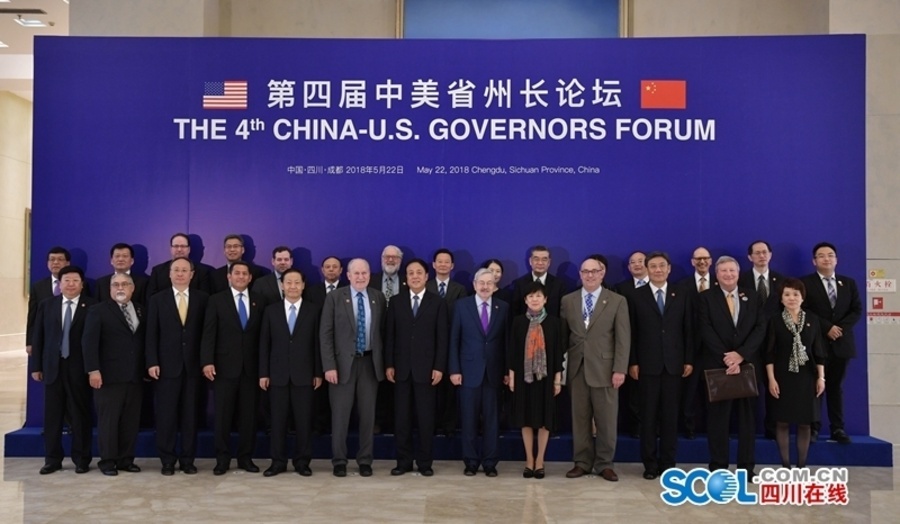 5月22日上午,以“坚持合作共赢 共同发展进步”为主题的第四届中美省州长论坛在成都开幕。全国人大常委会副委员长、九三学社中央主席武维华,美国驻华大使布兰斯塔德分别作主旨发言,中国人民对外友好协会会长李小林、四川省委书记彭清华分别致辞,美国阿拉斯加州州长沃克和黑龙江省委副书记、省长王文涛等出席开幕式,四川省委副书记、省长尹力主持开幕式。