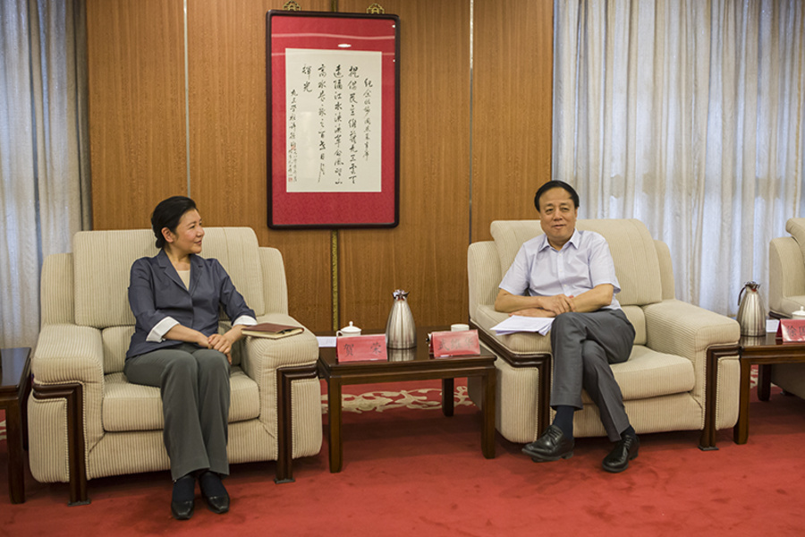 6月1日上午,九三学社中央主席武维华在九三学社中央机关会见中共陕西省委副书记贺荣。