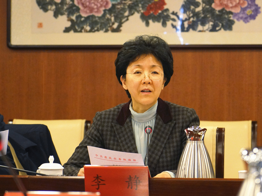 受中共重庆市委书记陈敏尔委托,李静代表中共重庆市委、市政府,对九三学社长期以来对重庆发展的关注和支持表示感谢。她介绍了2018年重庆市统战工作和九三学社重庆市委工作情况,表示中共重庆市委统战部将根据陈敏尔书记关于统战工作要走在全国前列的目标要求,深化与包括九三学社在内的各民主党派的合作。希望未来在大数据智能化、“九重合作”、帮扶秀山县等方面继续得到九三学社的帮助,以助力重庆高质量发展。