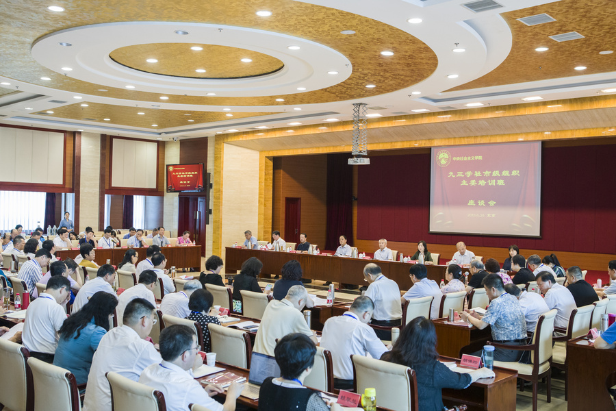 6月24日下午,九三学社中央主席武维华与正在中央社会主义学院参加首期九三学社市级组织主委培训班的学员举行集体座谈,强调要抓住市级组织主委这个关键少数中的关键,努力打造积极向上、奋发有为的新时代九三学社市级组织。九三学社中央常务副主席邵鸿主持座谈会。