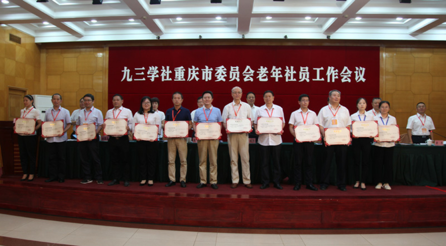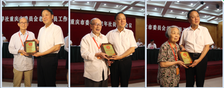 会议对部分老社员及老年社员工作主题研究优秀课题组进行了表彰奖励。武维华向何知凡等10位入社超过60年的老社员颁发“加入九三学社60年纪念”荣誉证书,他们中年纪最小的也已超过90岁;向“发挥老年社员作用,弘扬社的优良传统”主题研究优秀课题组颁发荣誉证书。优秀课题组执笔人代表徐宗俦、刘培义交流了理论研究成果;老年社员代表周宗兴、社市委老年委主任赵艾叶、社区级组织主委代表毛伟、社员所在单位党组织代表西南大学党委统战部部长周文全等也在会上作交流发言。