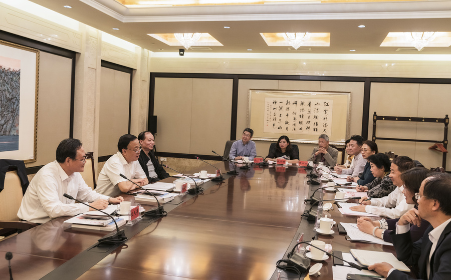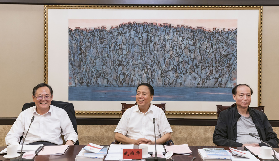九三学社中央主席武维华率领全国人大常委会渔业法执法检查组在青岛开展渔业执法检查期间,看望青岛市九三学社社员,调研九三学社山东省委、青岛市委“不忘合作初心,继续携手前进”主题教育活动开展情况。
