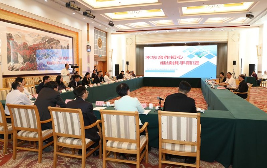 随同参加执法检查的全国人大常委会委员、九三学社中央常委、浙江省委主委姒建敏参加座谈。