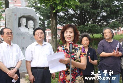 九三学社青岛市委主委邵峰晶在国学大师陆侃如和夫人冯沅君雕像落成仪式上致辞