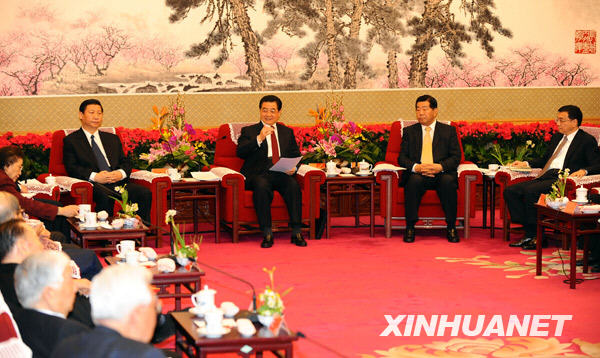 胡锦涛代表中共中央、国务院向各民主党派、工商联和无党派人士,向统一战线广大成员,致以新春的祝福