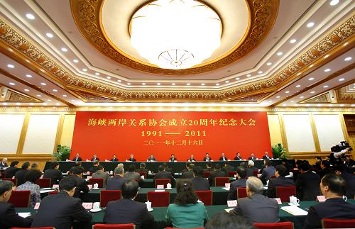 12月16日,海峡两岸关系协会成立20周年纪念大会在北京人民大会堂举行。新华社发(万象 摄)