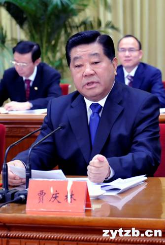 中共中央政治局常委、全国政协主席贾庆林出席全国非公有制经济先进典型事迹报告会并讲话。本网记者程鹏 摄