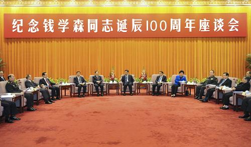 纪念钱学森同志诞辰100周年座谈会8日在北京人民大会堂举行。中共中央政治局常委、全国政协主席贾庆林出席座谈会并讲话,中共中央政治局常委、国务院副总理李克强出席。贾庆林强调,纪念钱学森同志诞辰100周年,就是要深切缅怀他为我国科学事业和国防现代化建设建立的卓越功勋,追思和学习他为国家富强和民族振兴不懈奋斗的崇高品德和革命精神,进一步激励海内外中华儿女同心同德、开拓进取,为推进中国特色社会主义伟大事业、实现中华民族伟大复兴而共同奋斗。