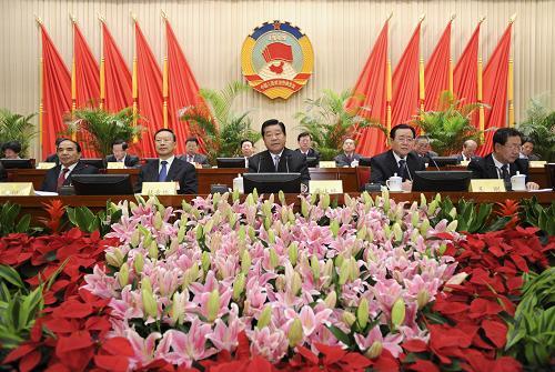 10月22日,政协十一届全国委员会常务委员会第十一次会议圆满完成各项议程,在北京闭幕。中共中央政治局常委、全国政协主席贾庆林出席闭幕会并讲话。新华社记者 谢环驰 摄